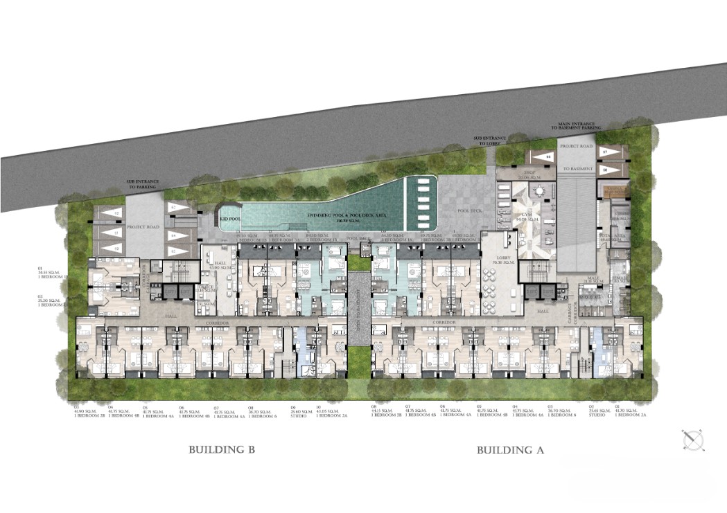 Set on a generous 2,445 sq.m. land plot, Avenue Boutique Condominium Pattaya comprises two 8-storey low-rise buildings with a shared basement car park and two high-speed elevators per building. With a total of 276 units, the project has been carefully curated to offer a variety of unit sizes to suit modern lifestyles: