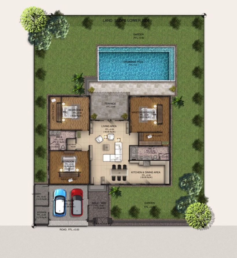 - Wide, landscaped roads that add to the elegance and functionality of the estate