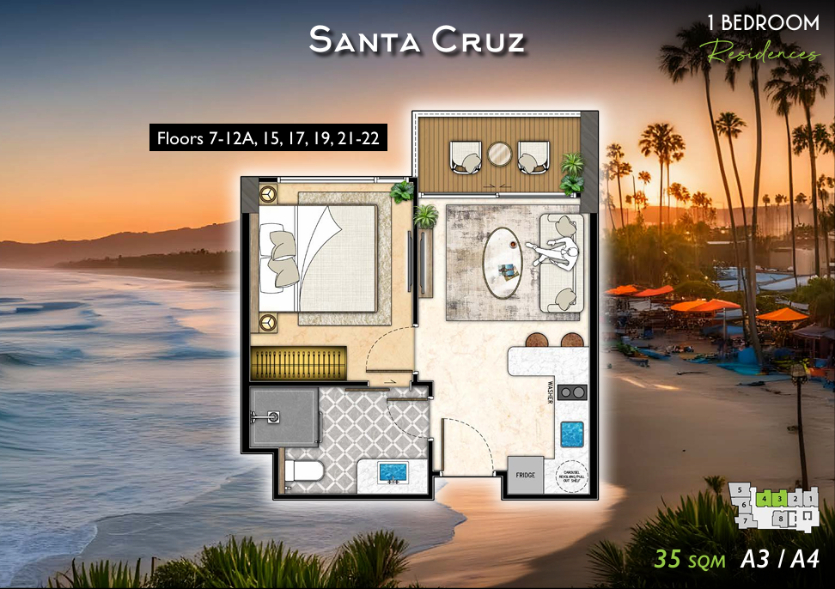 Each apartment for sale at The Riviera California Condominium Pattaya has been designed to deliver seamless comfort, luxury, and panoramic views, with a selection of layouts to suit a wide range of lifestyles: